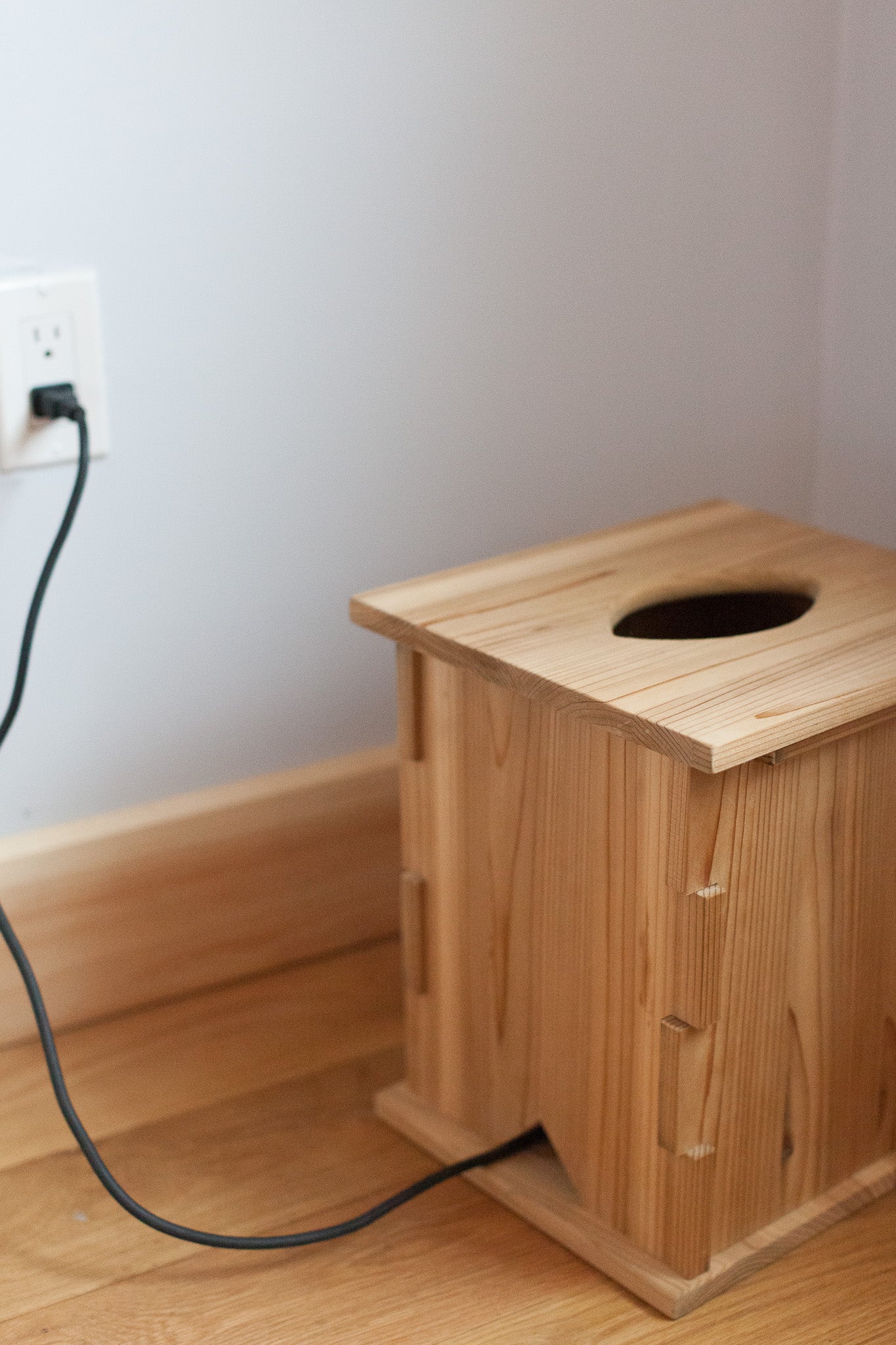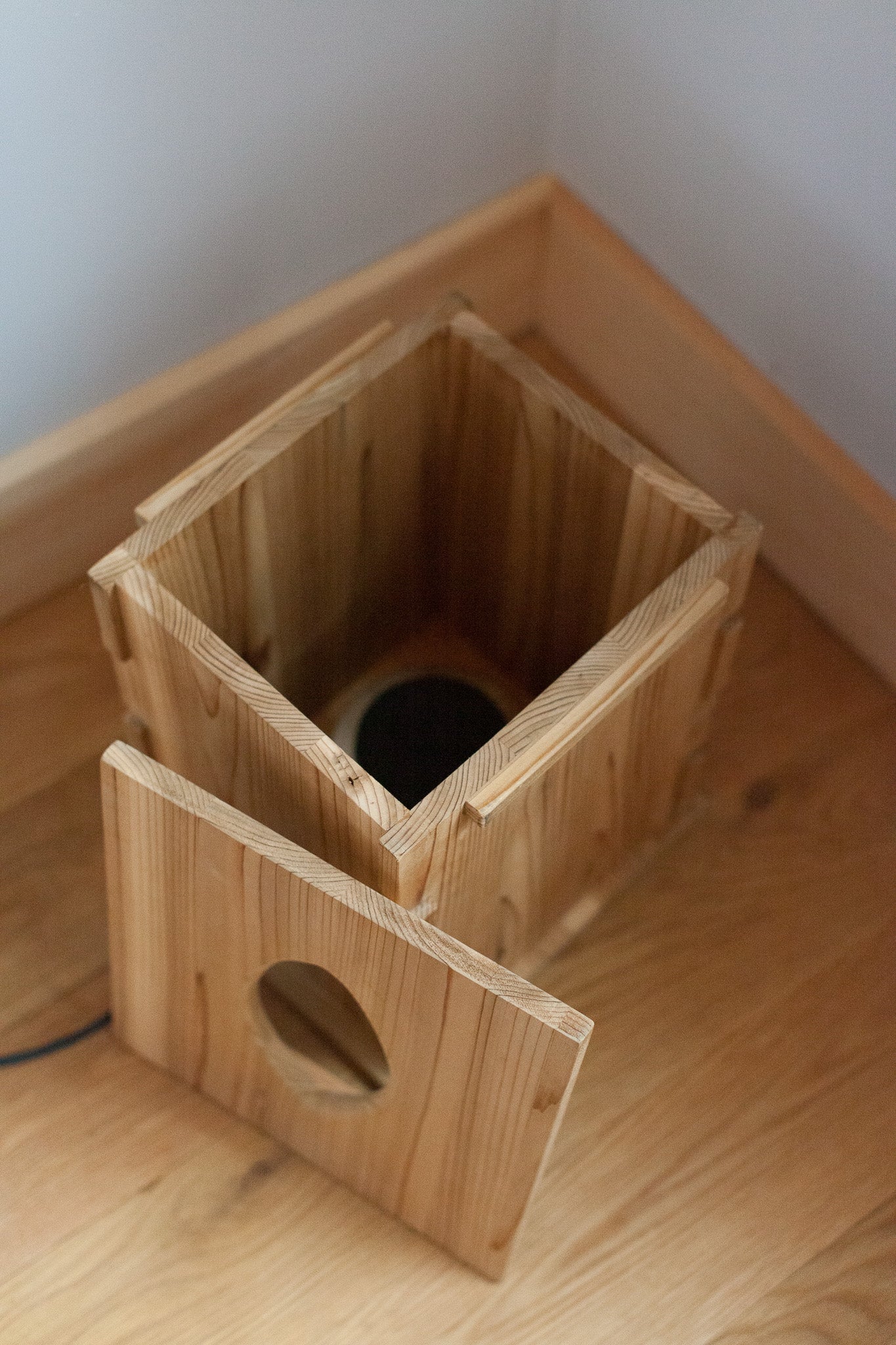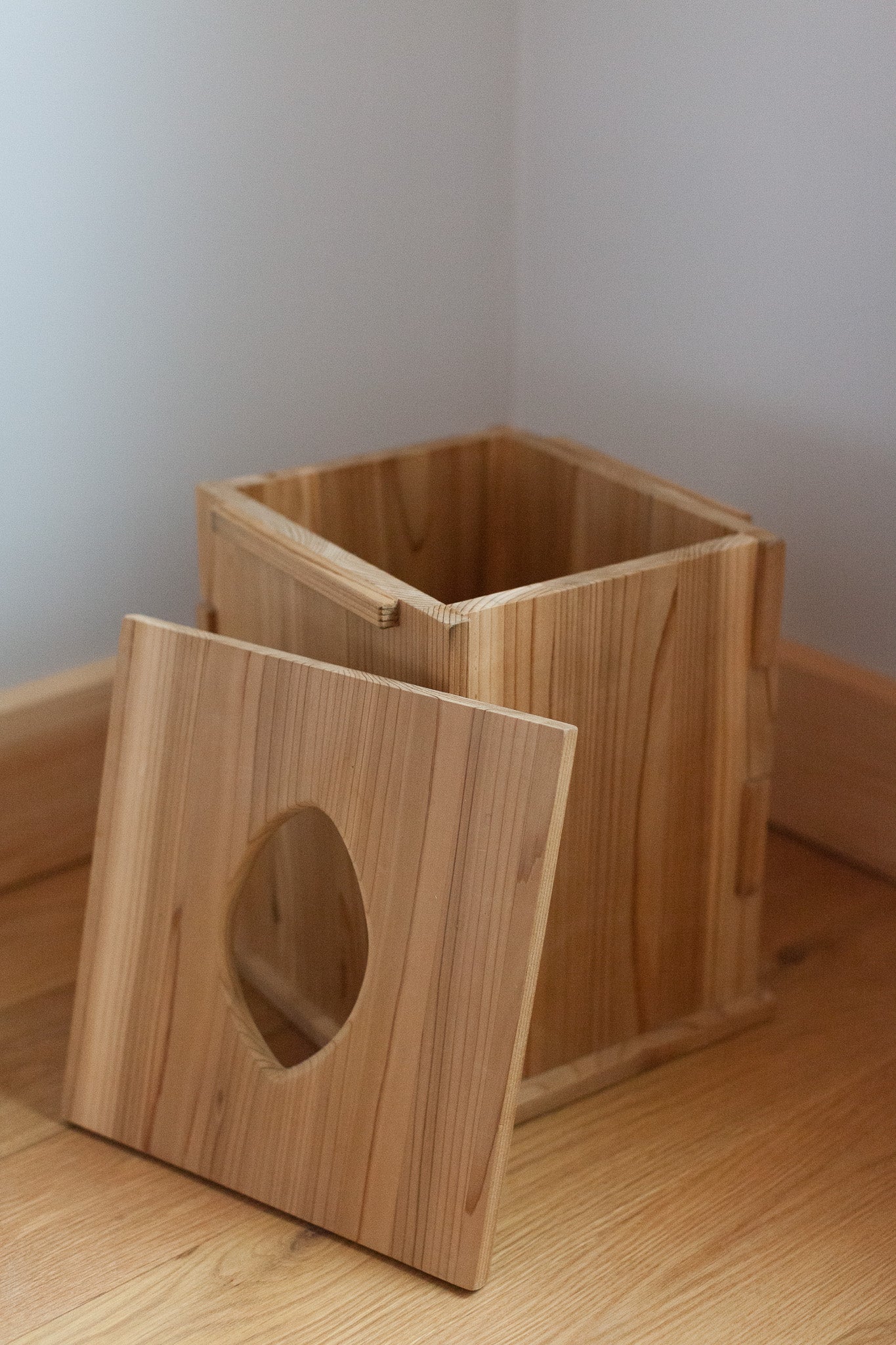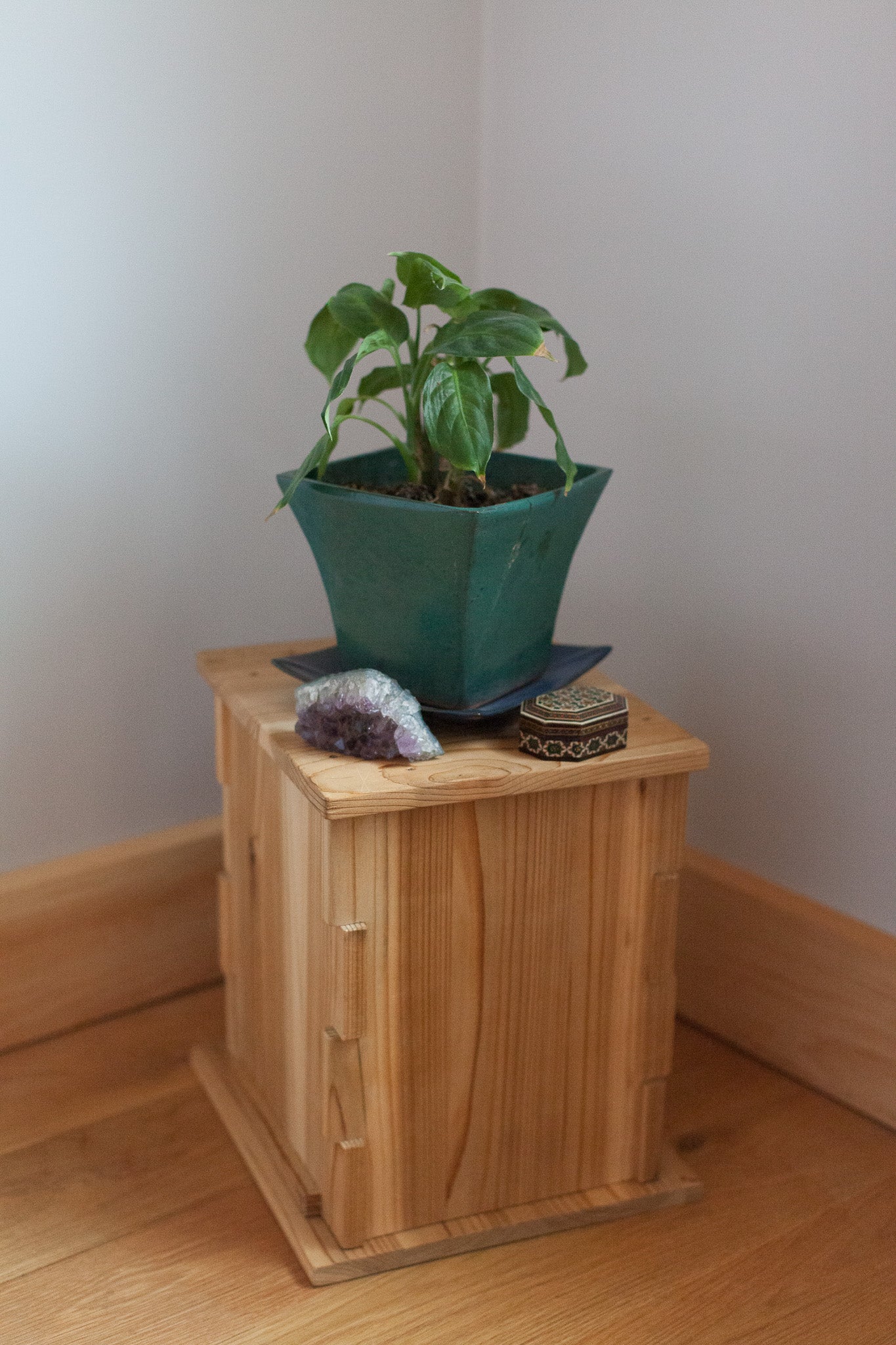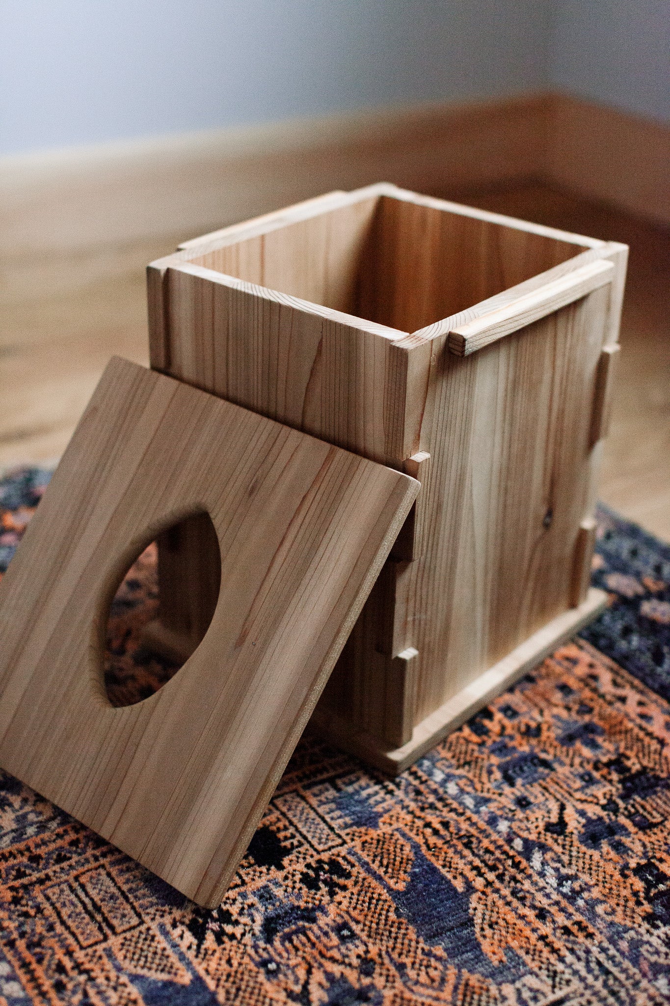 This mini box is made with Western Red Cedar*. Its design makes it very comfortable and sturdy for many body sizes. It can hold up to 250 lbs. It is 13 inches tall by 12 inches wide. The box comes disassembled with easy instructions on how to put it together. This design makes us able to ship worldwide. With built-in handles, you are able to carry and move it easily. The box features a hole for the burner cord to be plugged in. Small burners (available on our website) fit perfectly inside. When you are not using the box simply flip the box and use it as a cute little table. Our boxes are treated with beeswax so they are totally safe for your precious parts.